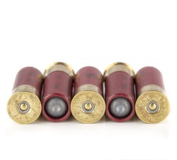 Each 2-3/4″ shell in this case of 250 fires one ounce (437.5 grain) rifled soft lead slug at a muzzle velocity of 1,610 feet per second. This high velocity promotes lethal expansion and energy transfer as well as a flat trajectory. These shells are effective on deer-sized game at a range of 75 yards and beyond. Each case contains 50 boxes of 5 shells apiece.